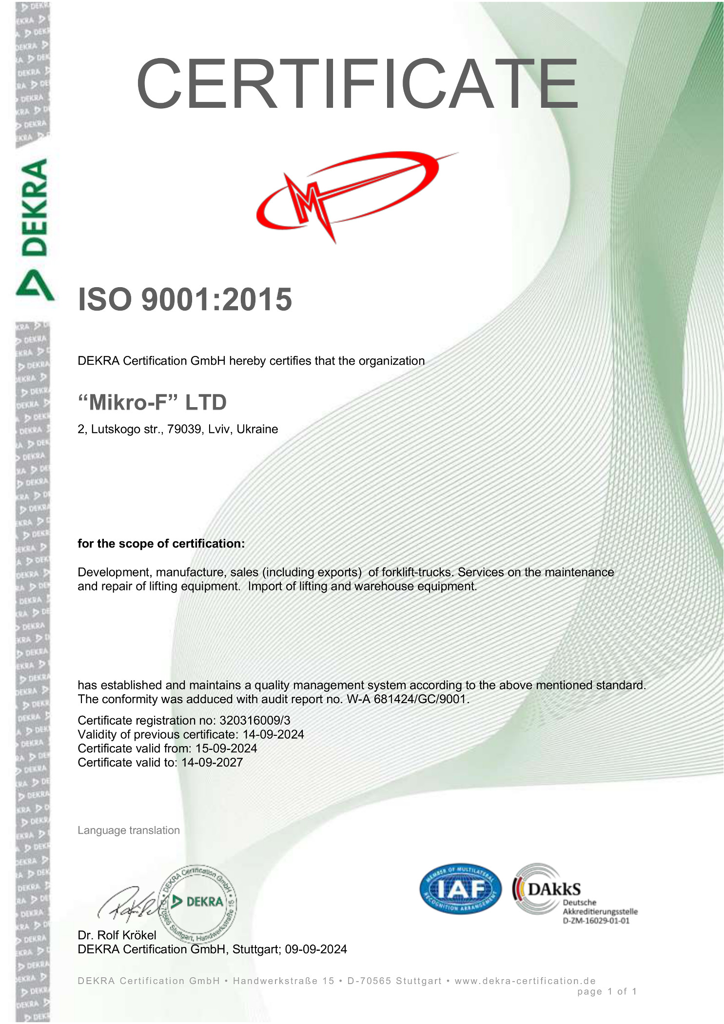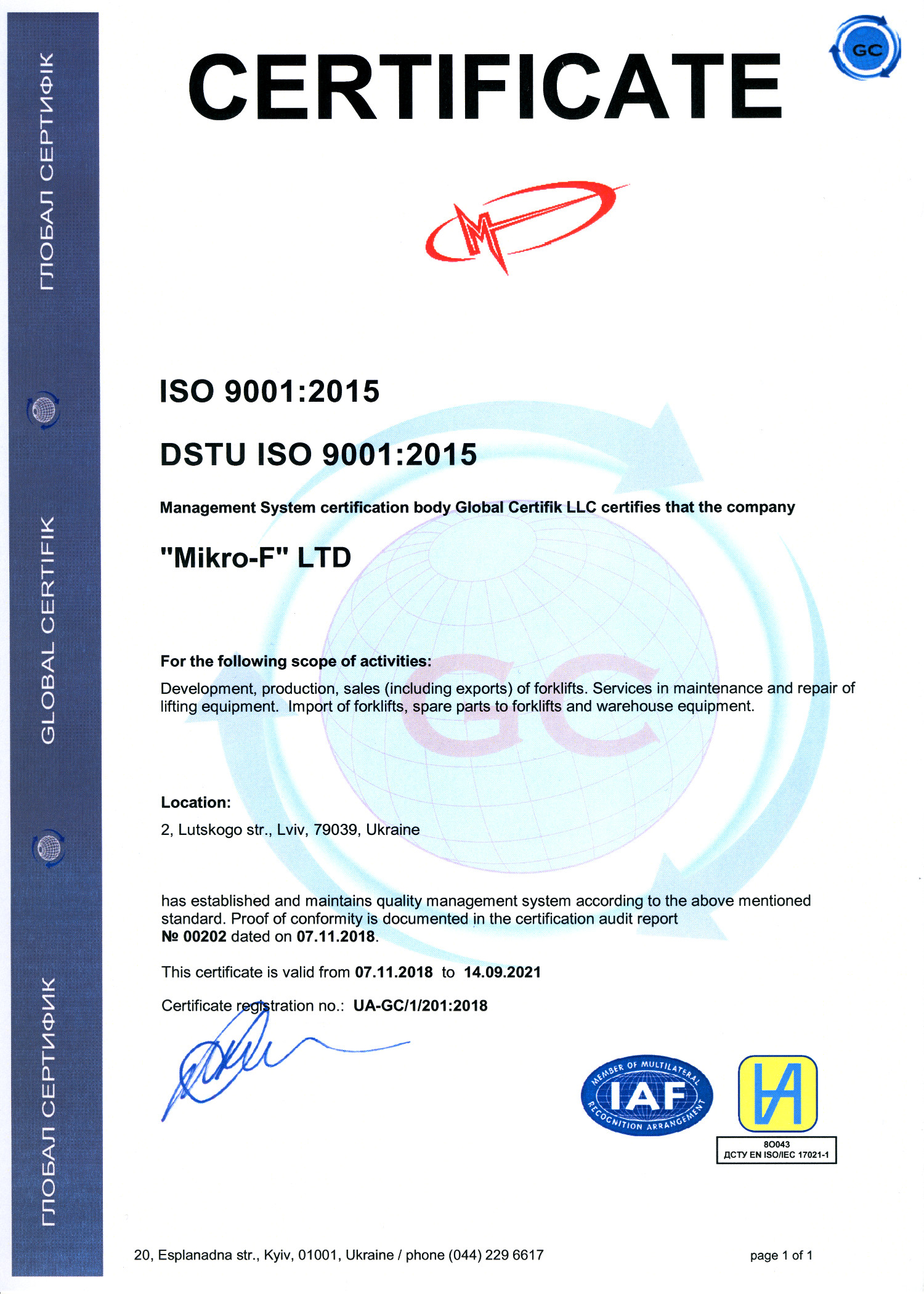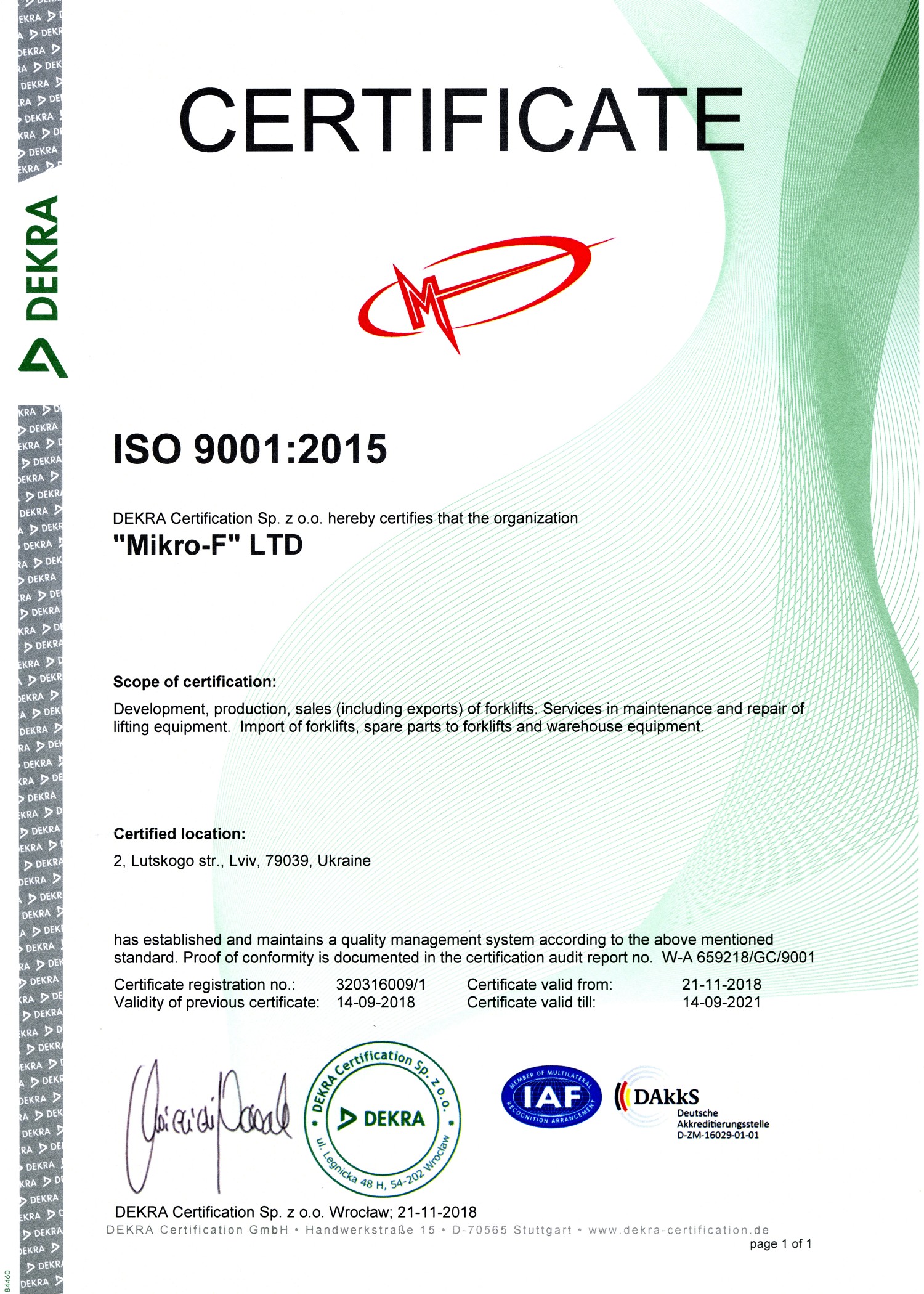 ТзОВ «МІКРО-Ф» з 1995 року успішно працює на ринку України та за її межами. За цей час Компанія зарекомендувала себе як надійний постачальник навантажувальної та складської техніки відомих світових компаній.